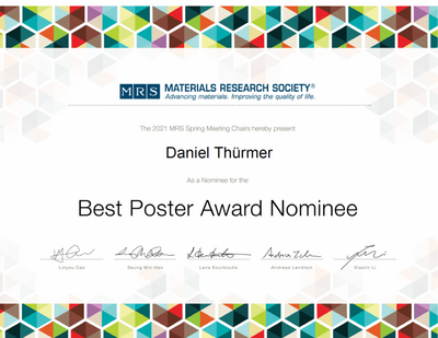 MRS Spring Meeting 2021: Best Poster Award Nominierung für Daniel Thürmer